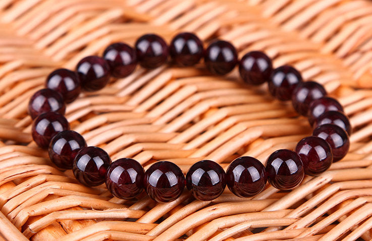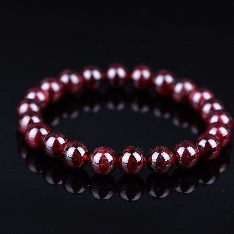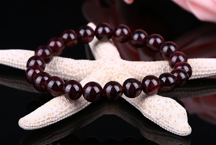 Natural Garnet Bracelet, Red Round Garnet Beaded Bracelet, Polished Gift Bracelet Unisex Mens Womens Crystal Gemstone Healing 6,8,10MM