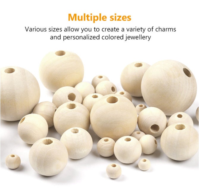 Natural Wood Beads 6mm - 20 mm, Bead Destash, Unfinished Wood Beads, Round Beads, Geometric Macramé Beads, Jewelry Supply Large Wooden Beads