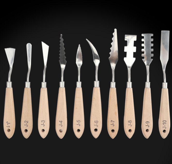 These beautiful palette knives are used to apply clean patches of color onto existing layers of paint or blank canvases.