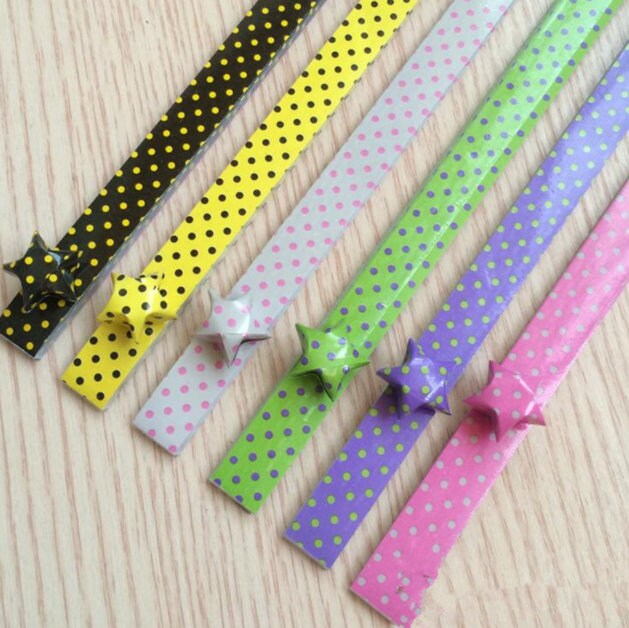 Origami Star Paper Strips, Star Folding Paper, Polka Dot Origami Star Paper, Japanese Lucky Wishing Stars, Rainbow DIY Star Paper