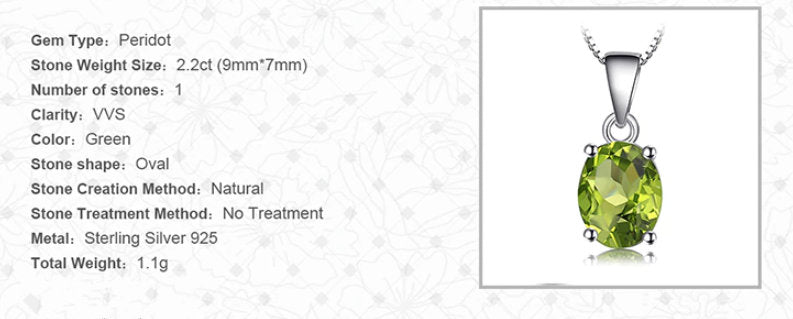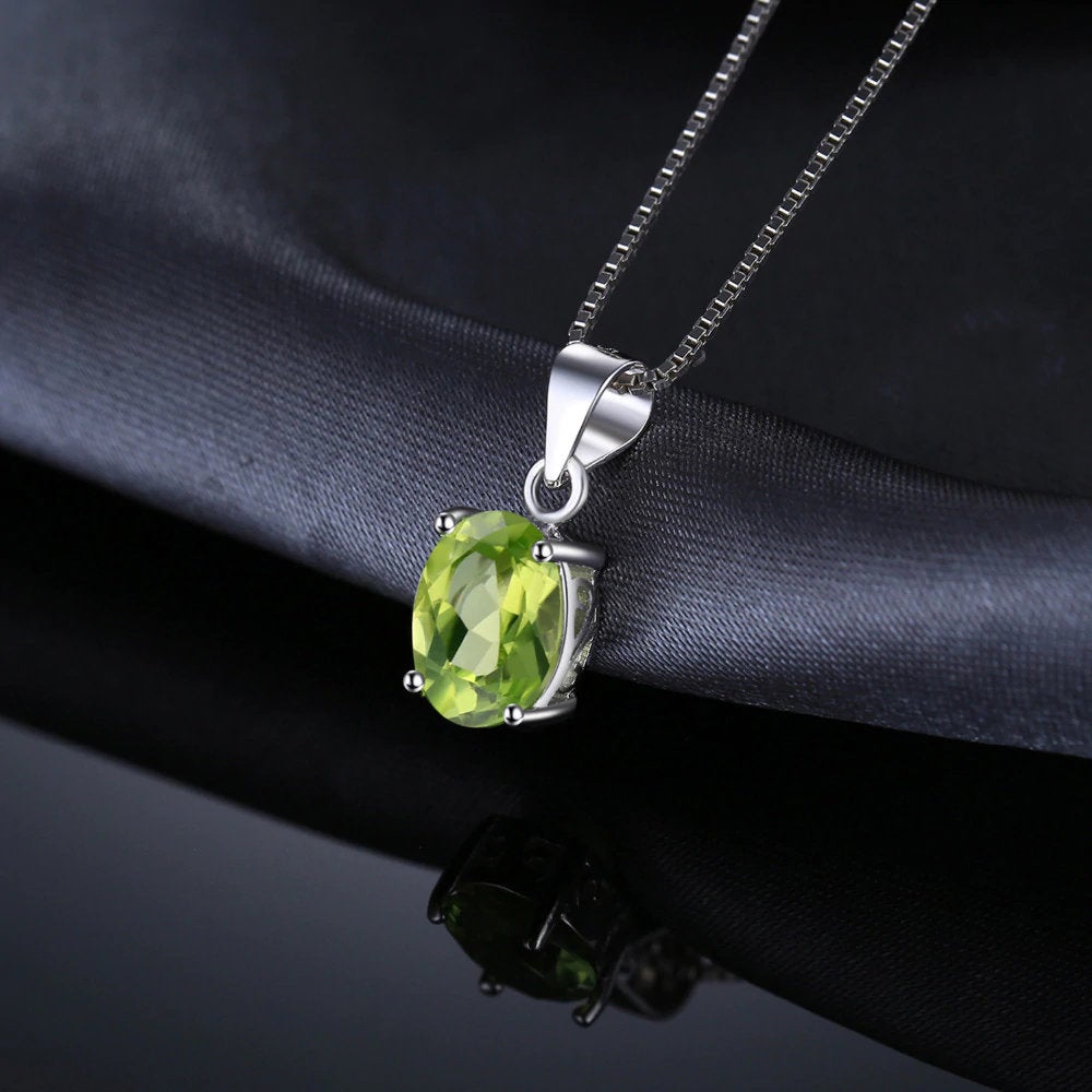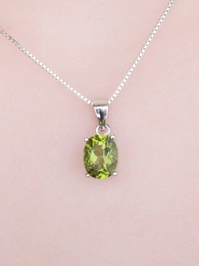 Oval Peridot Necklace, August Birthstone, 925 Sterling Silver, August Birthday, Genuine Gemstone, Peridot Pendant, Natural Peridot Stone