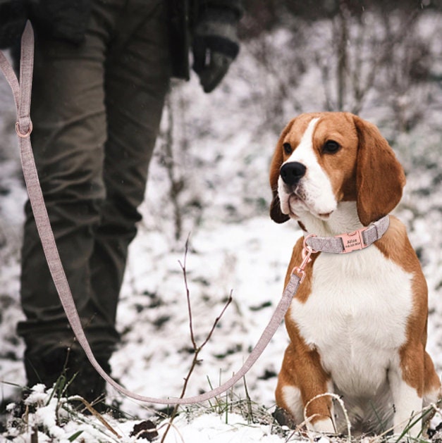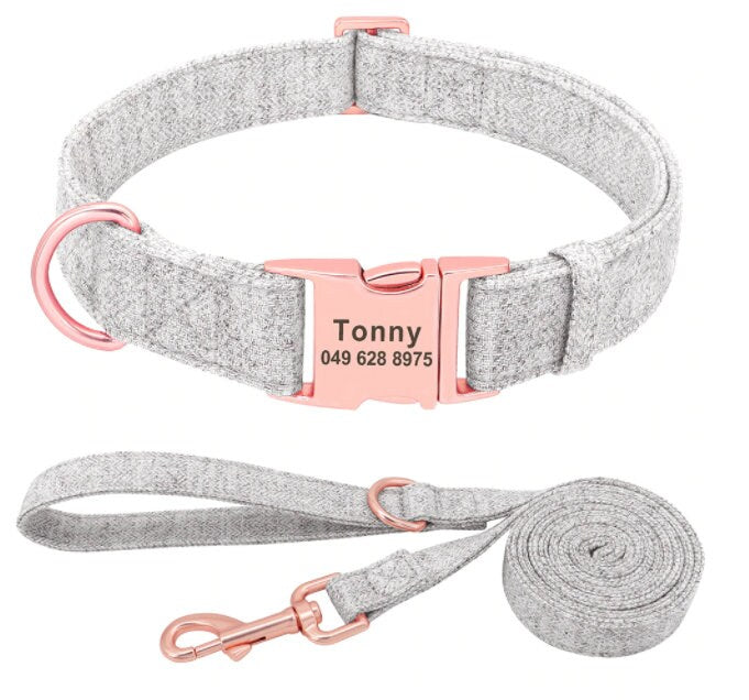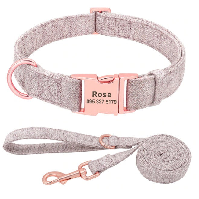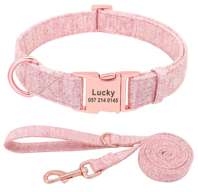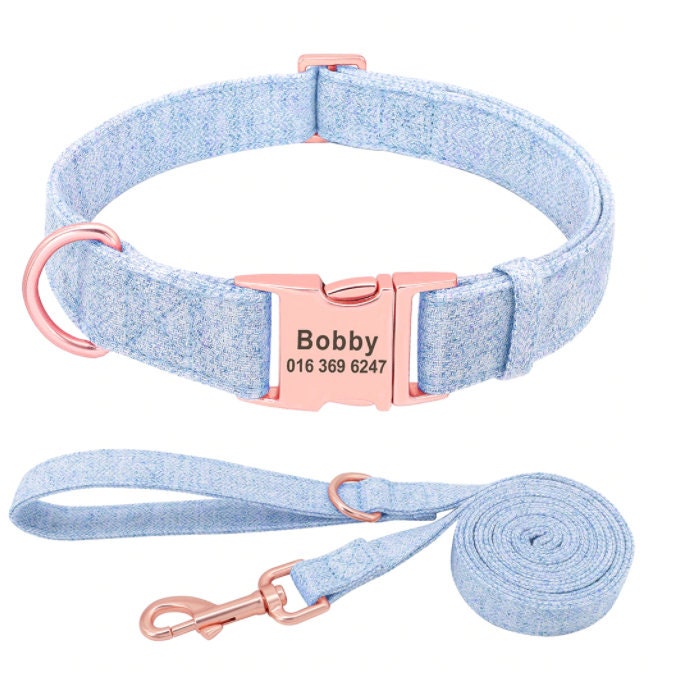 Personalized Dog Collar and Leash Set, Custom Dog Collar with Name Plate, Engraved Dog Collar, Leather Dog Collar, Small Medium Large Dogs