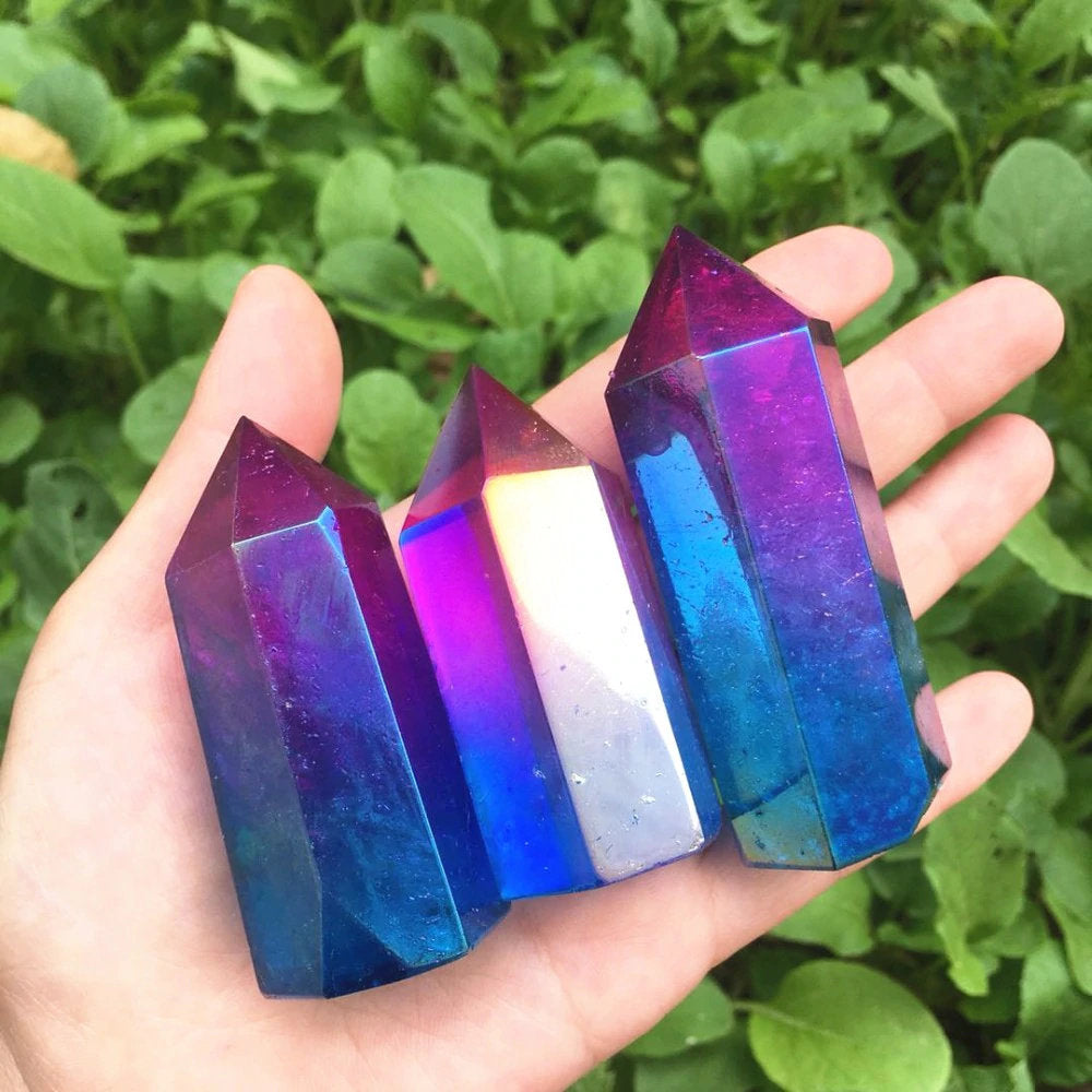 Purple Blue Aura Angel Quartz Tower - Cotton Candy Point - Obelisk - Rainbow Electroplated Healing Crystal - Reiki Gemstone - Home Decor