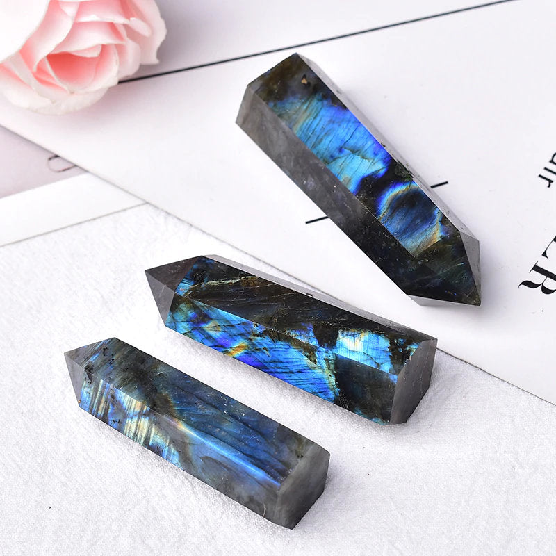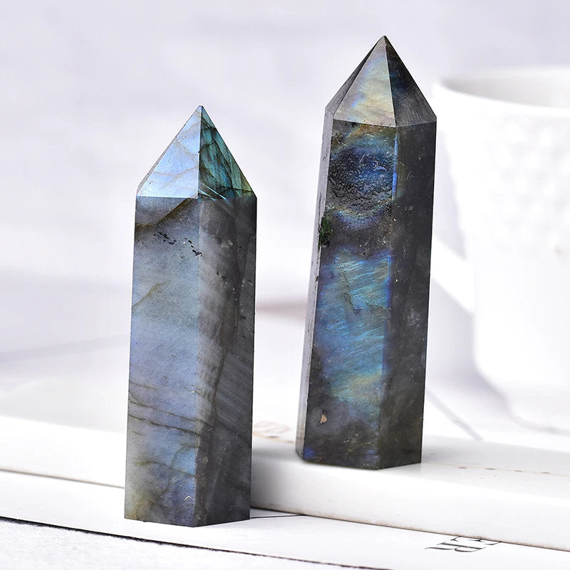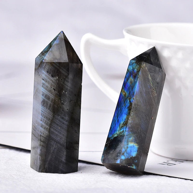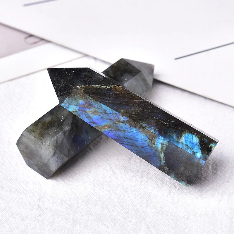 Rainbow Labradorite Tower, Natural Labradorite Wand Obelisk, Crystal Quartz Point, Healing Crystal, Reiki Chakra Decor, Crystal Generator