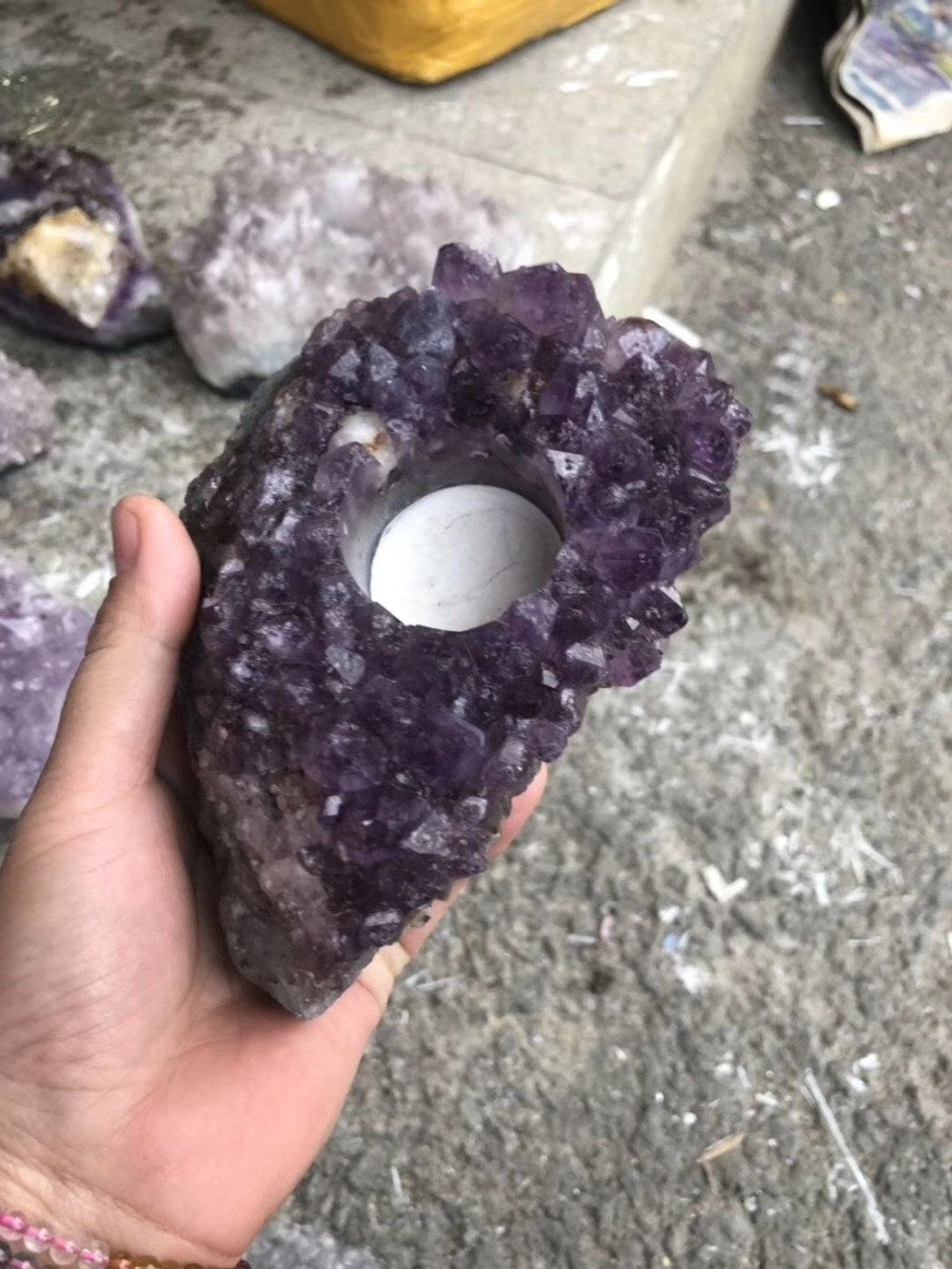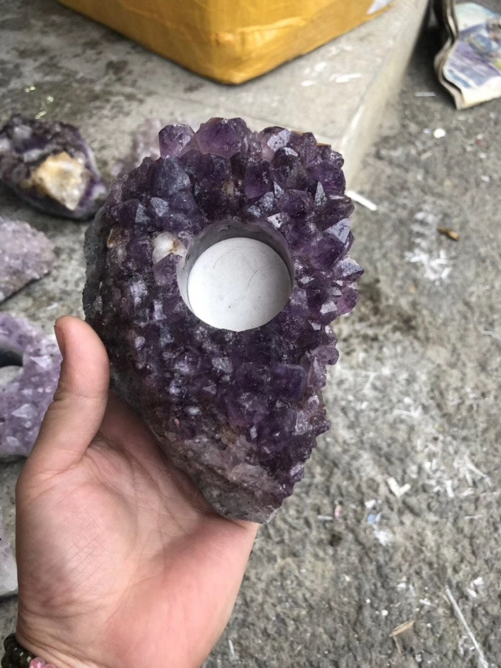 Raw Amethyst Candle Holder, Raw Quartz, Decor, Candle Decor, Amethyst, Healing Crystals, Amethyst Cluster, Crystal, Gift, Candleholder