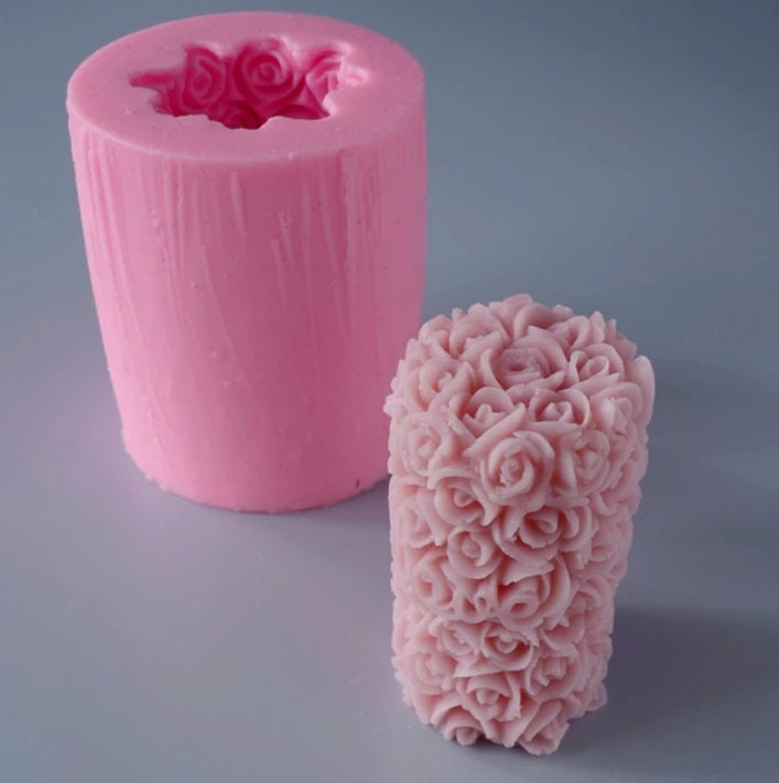 Rose Pillar Candle Mould | 3D Silicone Floral Flower Molds | Ice Wax Soap Resin Moulds | Bouquet Long Rectangular |DIY Crafting Making Mold