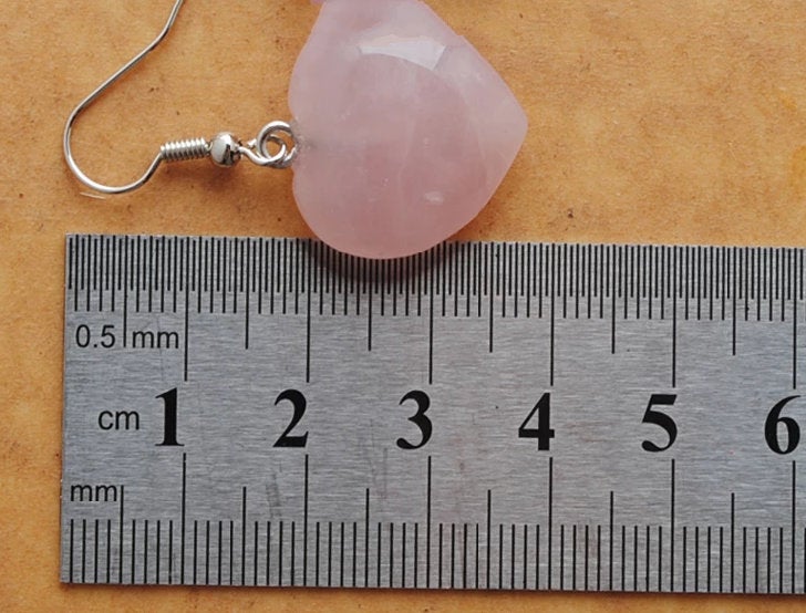 Rose Quartz Heart Earrings, Rose Quartz Jewelry, Silver Earrings, Raw Gemstone, Pink Earring, Dangle Earring, Gift for Her, Dainty Earrings