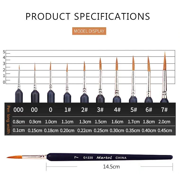 Set of 10 pointy Paint Brushes - Premium Quality Professional Painting Brushes - Weasel Hair artist brush - Painting Art Supplies