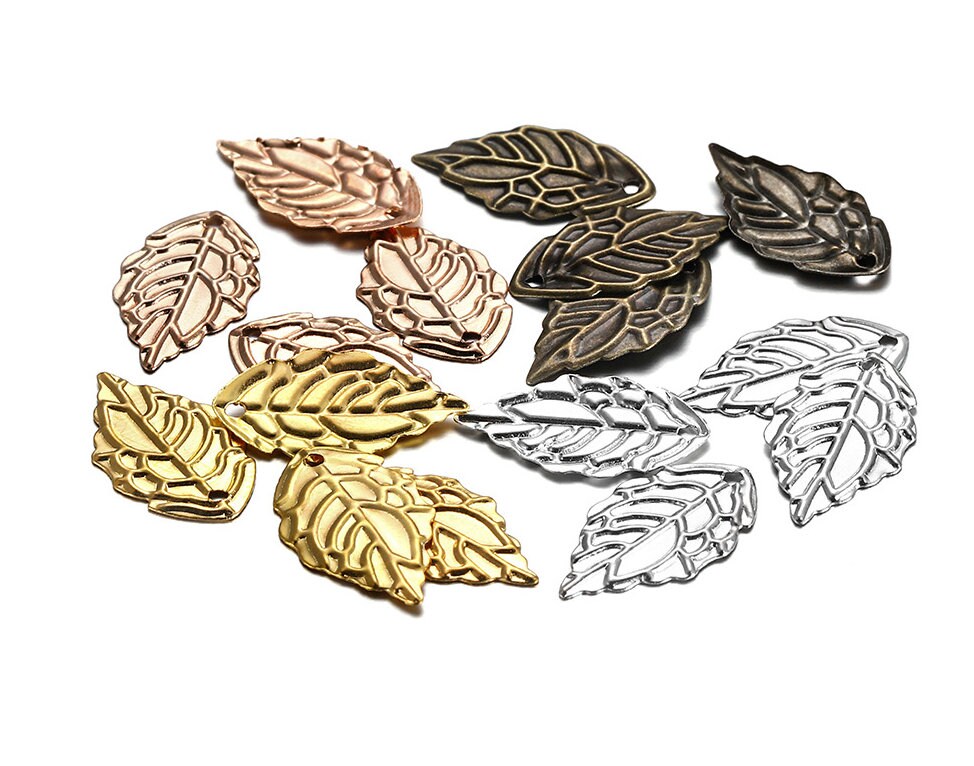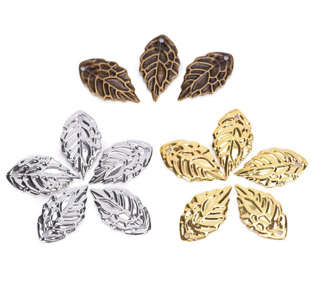 Shiny Gold Leaf Charms, Leaf Pendant, Gold Silver Bracelet Beads, Tiny Leaf Charms, Small Leaf Pendant, Gold Plated Findings, Jewelry Making