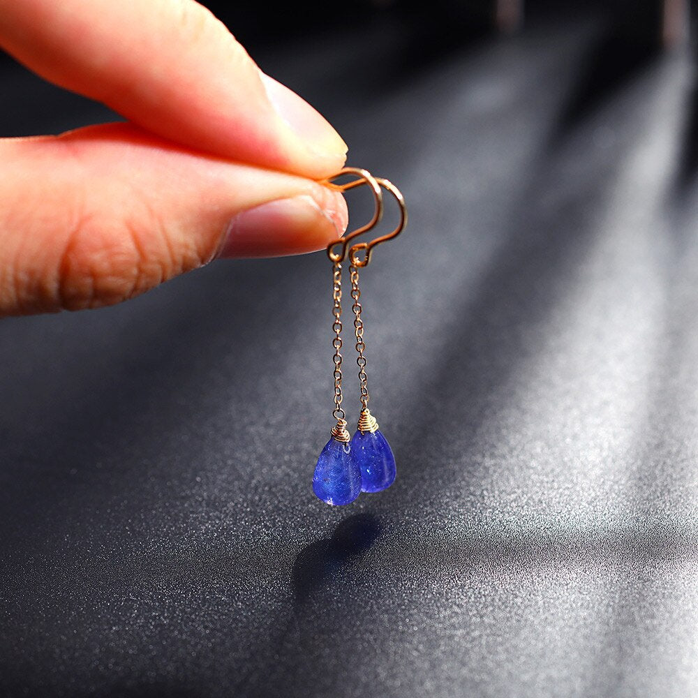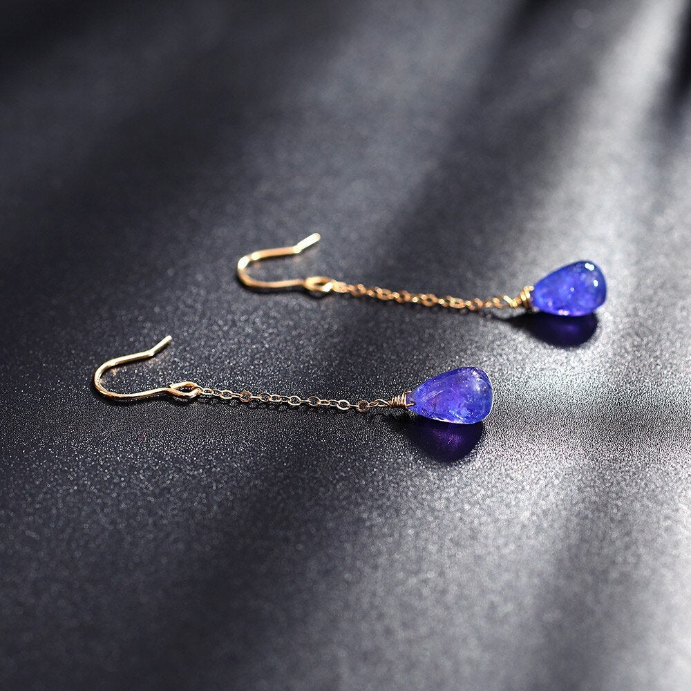 Tanzanite Earrings - Beautiful Tanzanite Fine Jewelry - Tanzanite Dangle Drop Earring - Dainty Gold Purple Gemstone Birthstone Earring