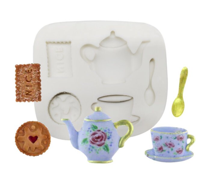 Tea Pot Mold - Small Teapot Mold - Tea Cup Mold - Fondant Mold - Chocolate Mold Resin Mold Clay - Mold Teapot Mould Tea Cup Mould - Cupcake