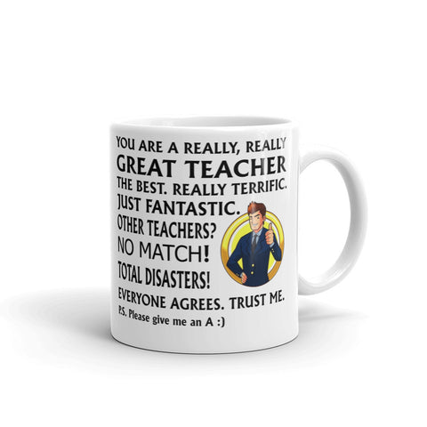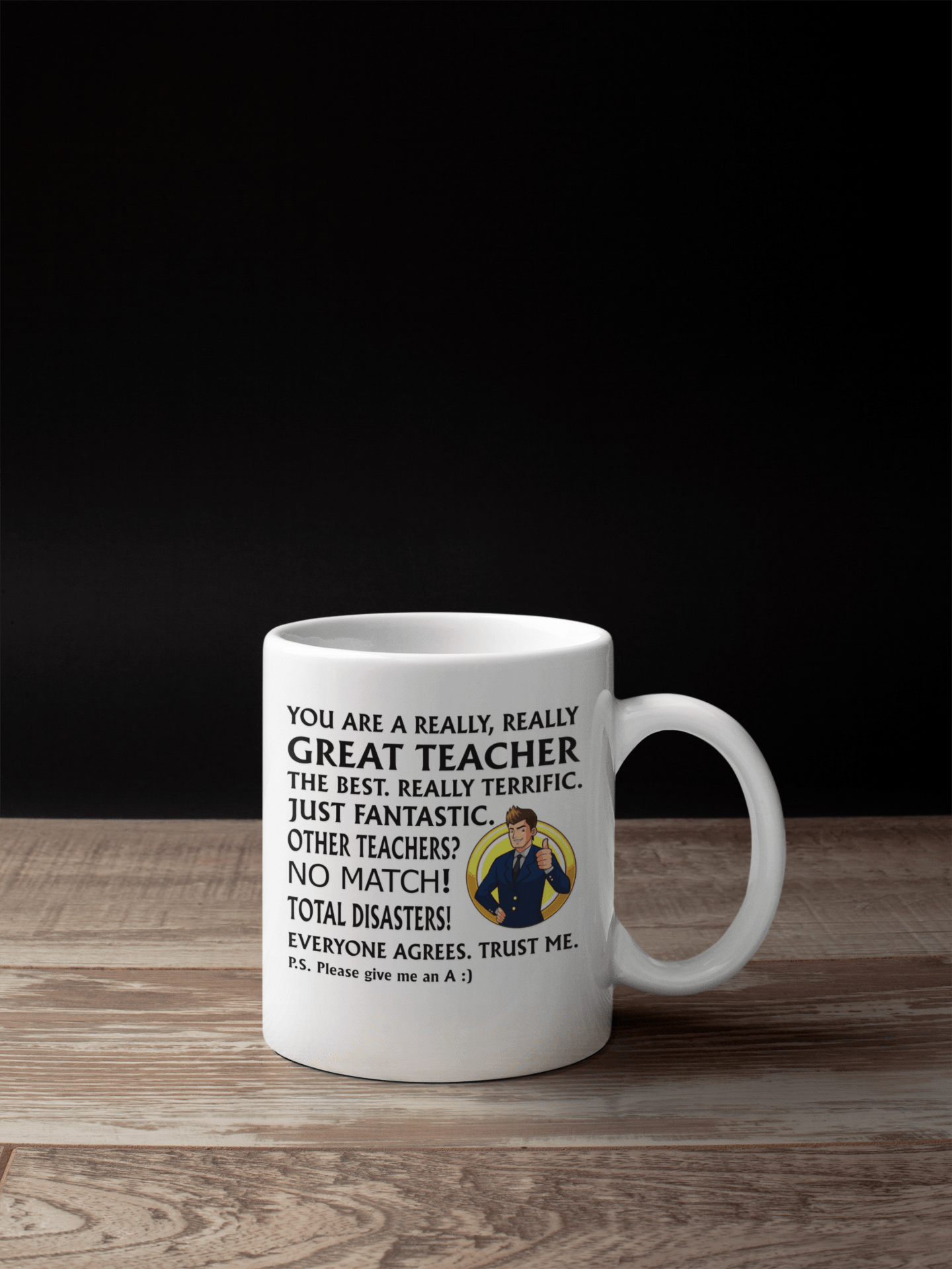 If yes, then should definetely consider this mug which will both make your teacher feel special and also indirectly bribe the teacher:)