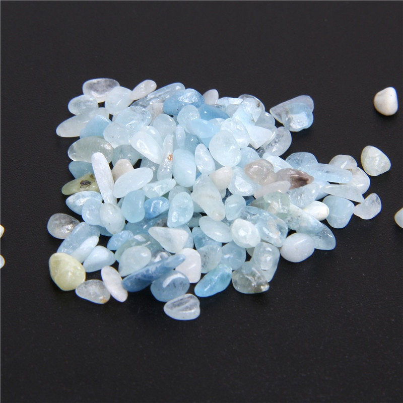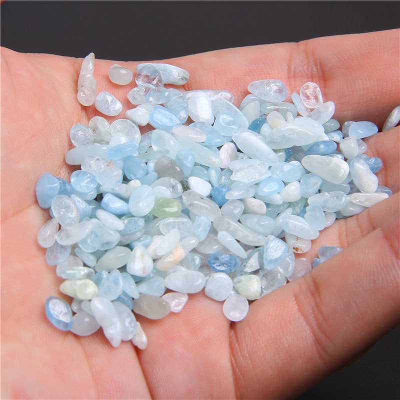 Tiny Aquamarine Chips, 100 Grams, Light Blue Gemstone Chips, Tumbled Undrilled Healing Gemstone, Polished Semi-Precious Rocks, Calming Stone