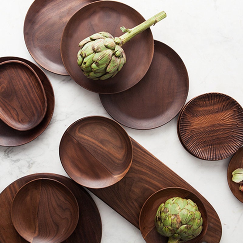 Wood Plates, Wooden Tableware, Kitchen Dinner Plate, Food Dessert, Tea Plate, Round Handmade Sushi Dish For Daily Use, Housewarming Gift