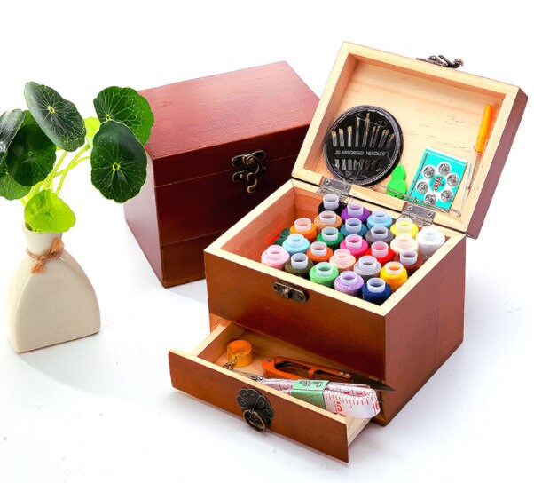 Wooden Sewing Box - Sewing Kit for Adults - Sewing Basket - Hand Sewing Box - Sewing Organizer Supplies Accessories Gift - Sewing Case
