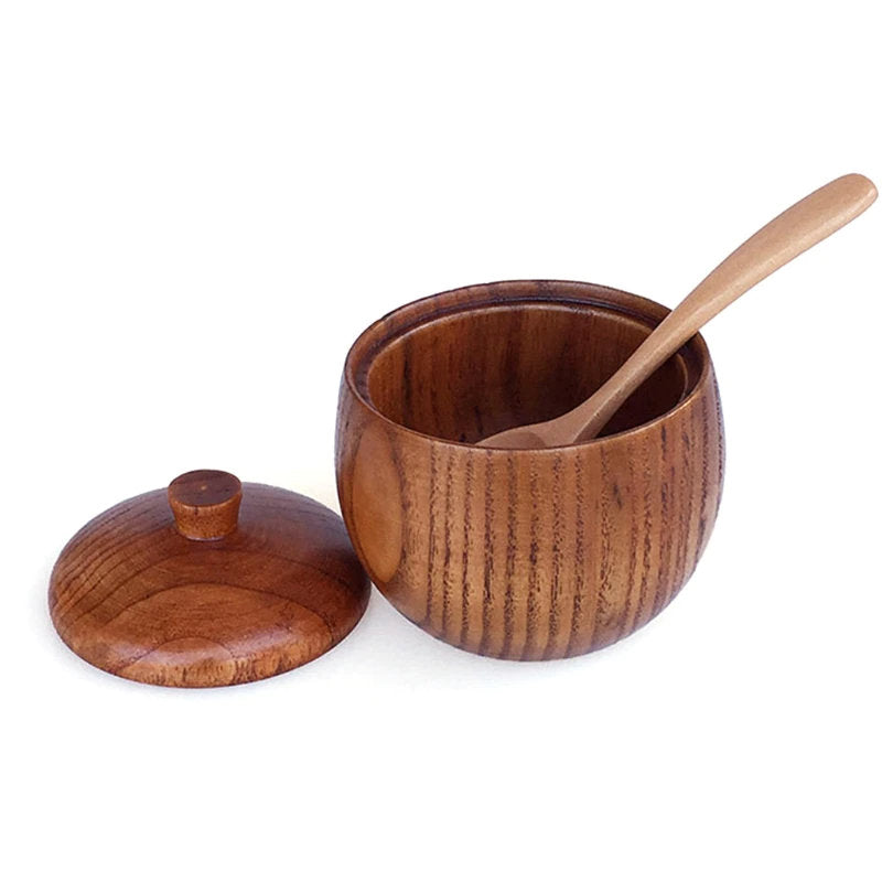 Wooden Spice Jar | Jar with Lid | Food Storage | Candle Jars | Kitchen Seasoning | Organization | Salt Condiment Pot Spoon | Kitchen Dining